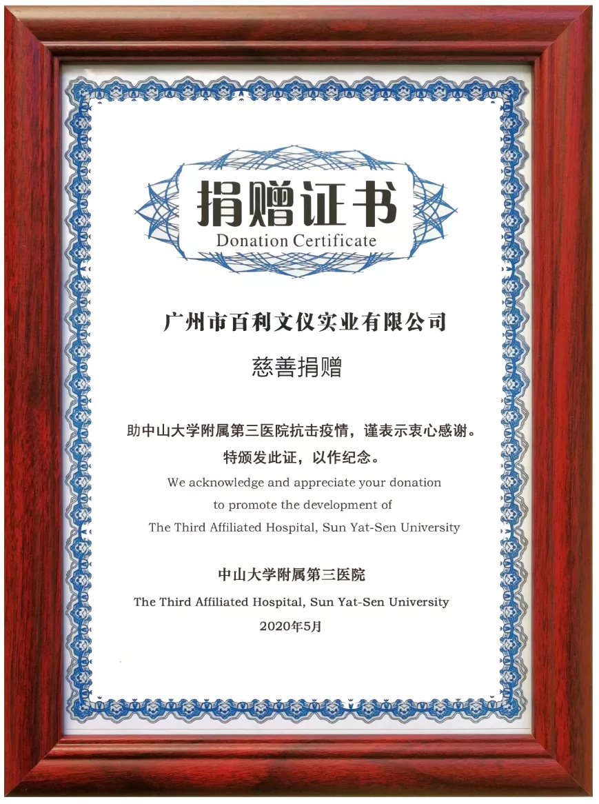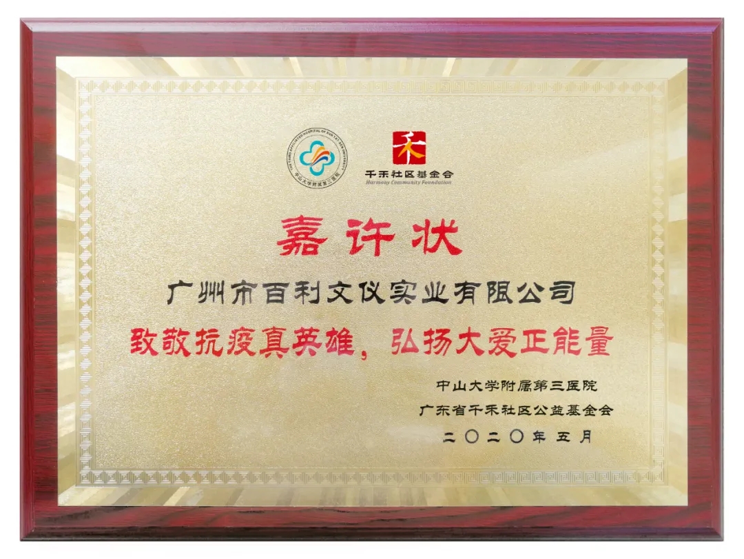 中山三院黨委書記丘國新向百利集團(tuán)頒發(fā)感謝信和牌匾