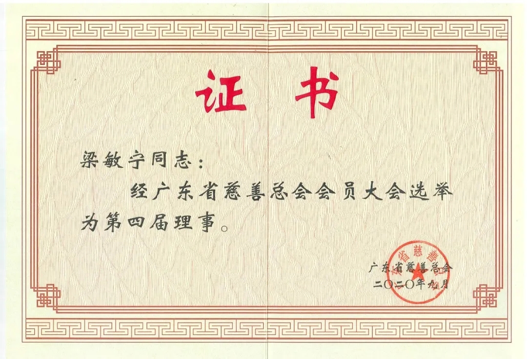 新征程 新使命丨熱烈祝賀百利集團副總裁梁敏寧女士當選廣東省慈善總會第四屆理事